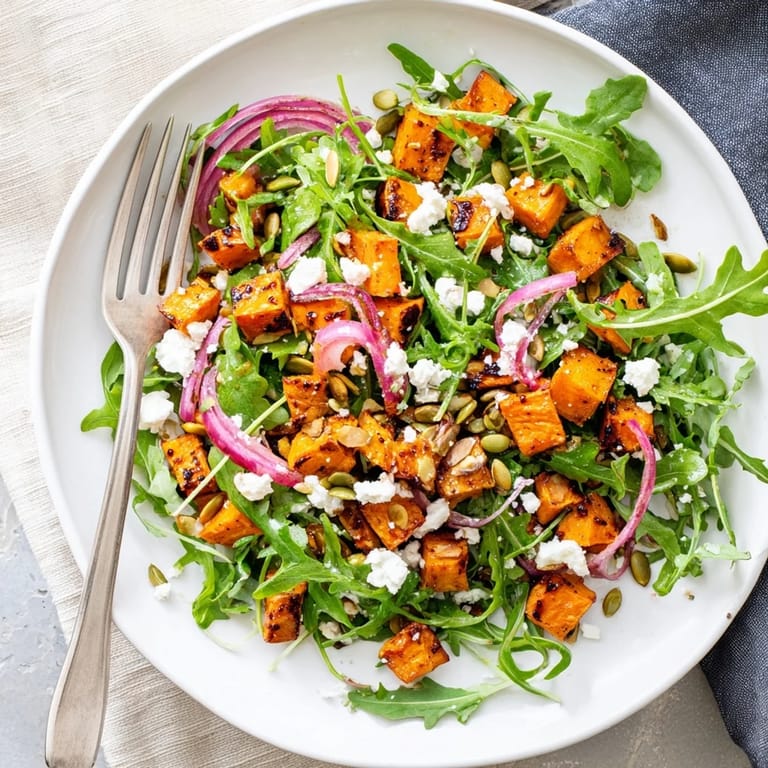 Save to Pinterest My neighbor handed me a bag of sweet potatoes from her garden one autumn afternoon, far more than I could possibly turn into the usual mash. I tossed them with olive oil and roasted them until their edges crisped and their centers went soft and sweet. That evening, I threw together what I had in the fridge: peppery arugula, some crumbled feta, and a quick lime dressing I whisked in a jam jar. It became the kind of salad I crave when I want something that feels both light and satisfying.